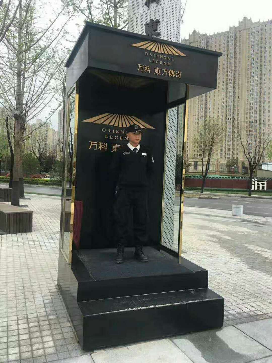 5.崗亭玻璃為8mm鋼化玻璃,周邊采用鈦金色不銹鋼做裝飾;
